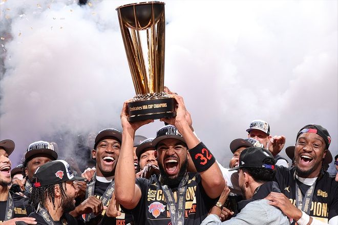 再来看今天的NBA比赛,最受关注的,无疑是NBA杯决赛2.0版本,马刺队和尼克斯的再次碰面!两队在NBA杯决赛的对决,最终以尼克斯时隔52年首次触及冠军奖杯结尾。虽然那场比赛不是奥布莱恩奖杯,也不计入常规赛战绩,但至少也是一个冠军。所以文班亚马对此耿耿于怀,认为那场比赛他们不应该输球。直言,要在今天拿回那一场胜利。