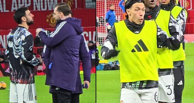 《太阳报》捕捉到曼联对阵布莱顿赛前热身的一幕,利桑德罗-马丁内斯在开球前将球狠狠砸向布鲁诺-费尔南德斯,无愧于他“屠夫”的绰号。布鲁诺-费尔南德斯随后得到检查并治疗,后面热身时两个鼻孔里都塞着棉花止血。